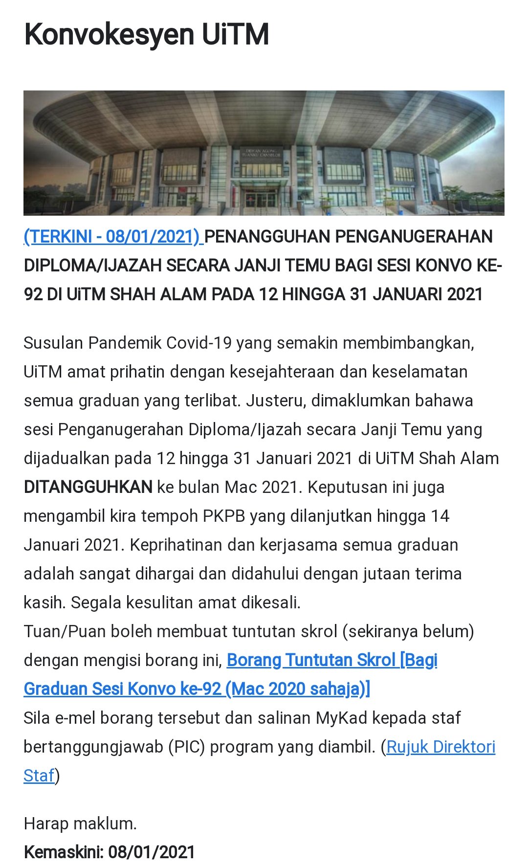 Uitm Official On Twitter Penangguhan Penganugerahan Diploma Ijazah Secara Janji Temu Bagi Sesi Konvo Ke 92 Di Uitm Shah Alam Pada 12 Hingga 31 Januari 2021 Maklumat Lanjut Sila Ke Laman Web Rasmi Bahagian